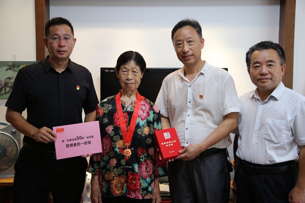 6月29日下午,集團黨委班子成員走訪慰問了部分黨齡滿50年的退休老黨員,為他們頒發“光榮在黨50年”紀念章,向他們致以崇高敬意和熱烈祝賀!今年,集團共有14名退休黨員獲此殊榮!在89歲老黨員陳寶珍家中,集團黨委書記周正如代表楊文龍董事長關切地詢問老人身體健康狀況和日常生活情況,感謝老人對仁和事業和醫藥健康事業的奉獻,號召大家向老黨員學習,傳承光榮傳統。