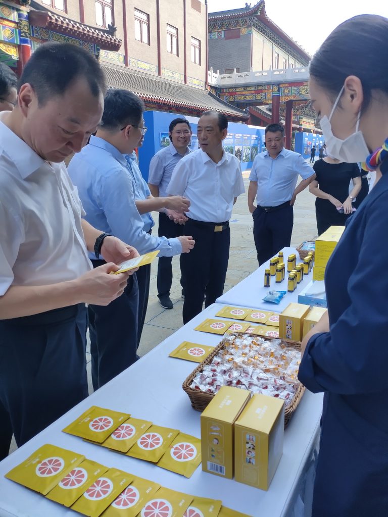 在現(xiàn)場主通道內(nèi)的仁和集團展位前,集團董事張威向于秀明書記詳細匯報了中藥經(jīng)典名方產(chǎn)業(yè)升級項目建設進度及企業(yè)當前工業(yè)生產(chǎn)、產(chǎn)量增長等情況,重點介紹了仁和大健康產(chǎn)業(yè)藍圖規(guī)劃及重點品種的研發(fā)情況。于秀明聽取后表示肯定,耐心詢問仁和大健康產(chǎn)品的成分功效,并興致勃勃地進行品嘗。他希望仁和集團立足千年藥都樟樹,堅守中醫(yī)藥發(fā)展使命初心,守正創(chuàng)新,做大做強,做精做細,不斷研發(fā)更多有中醫(yī)藥特色及科技水平的健康產(chǎn)品,持續(xù)增強企業(yè)核心競爭力,為打造藥都樟樹振興發(fā)展新樣板作出新貢獻。